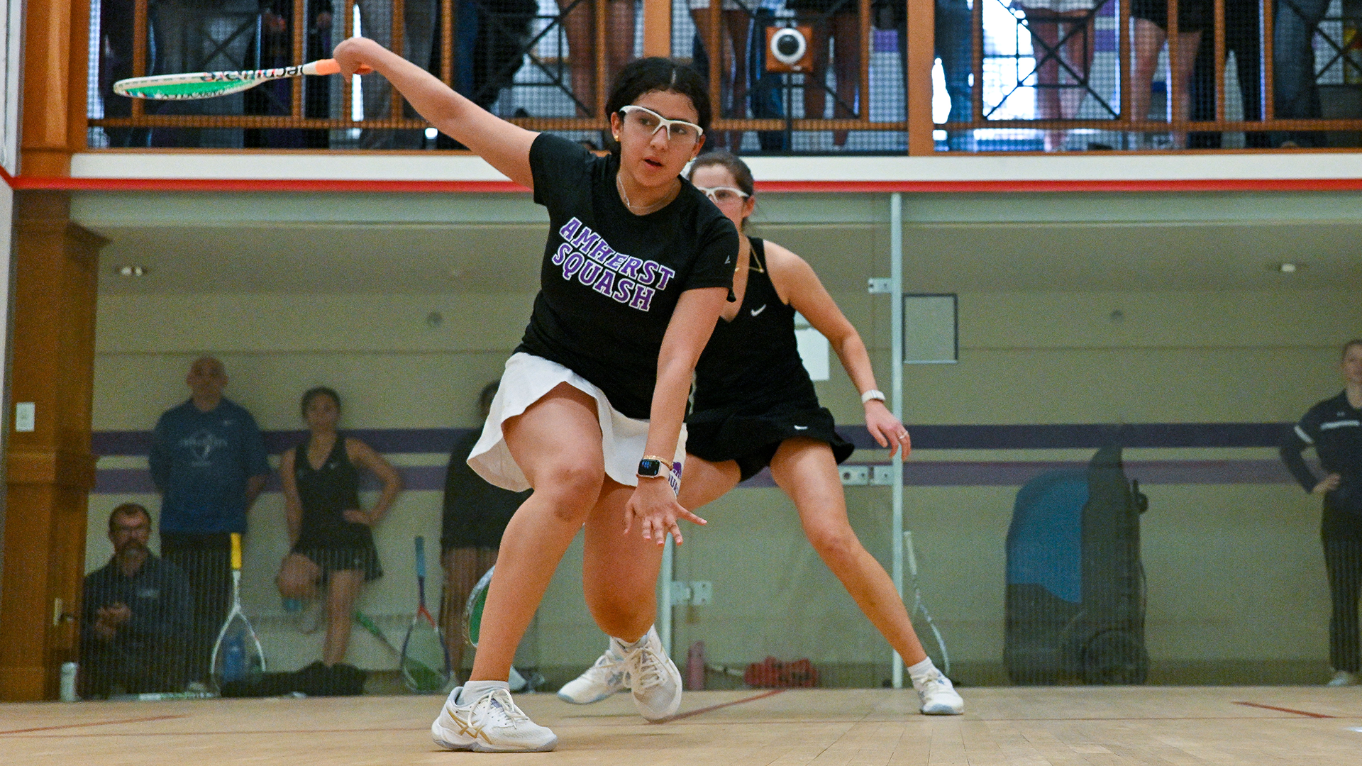 CLINTON, N.Y. -- The #14-ranked Amherst College women's squash team knocked off Bates in the quarterfinals of the New England Small College Athletic Conference Saturday at the Little Squash Center on the campus of Hamilton College before eventually succumbing to Trinity, 9--0, in the NESCAC semifinals played in the afternoon.